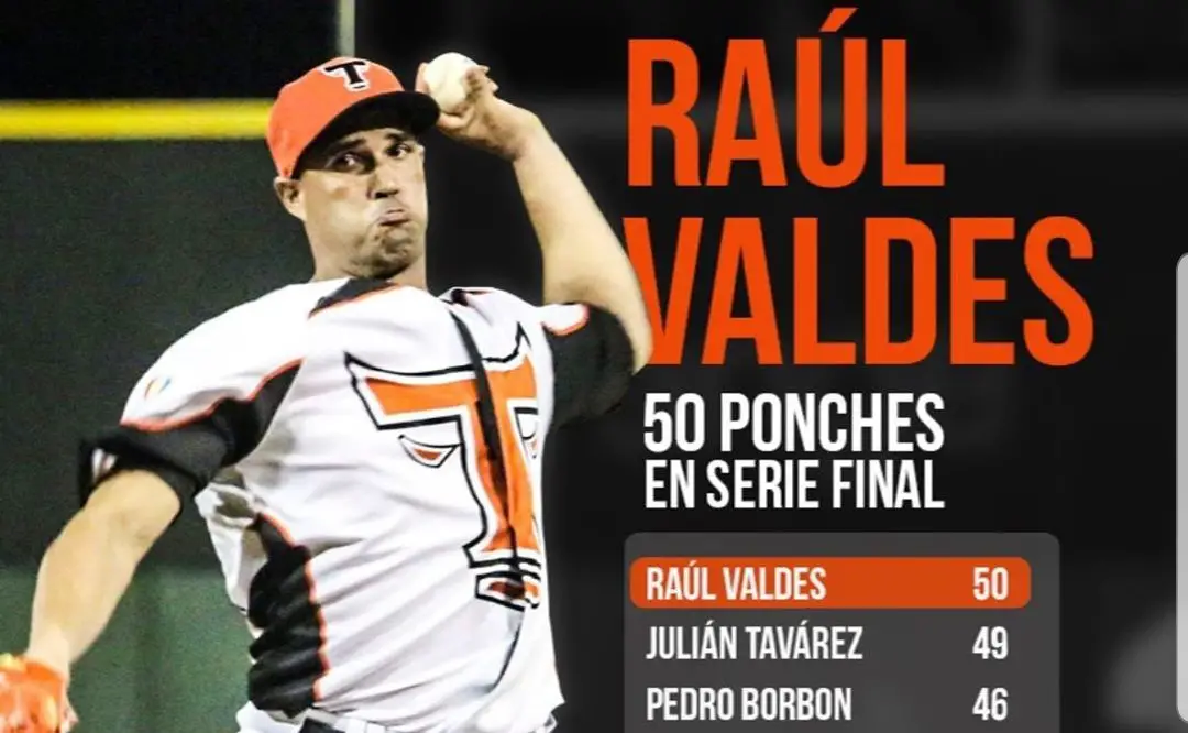 Nuestro Raúl Valdés llegó a 50 ponches en Series Finales dejando atrás a Julián Tavarez de las Aguilas Cibaeñas. pic.twitter.com/e0N7L20MC4— Toros Del Este (@TorosdelEste) January 28, 2020